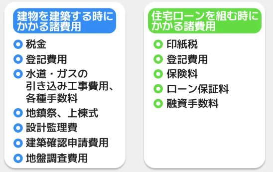 【銀行関係や法律上必要な手続き(諸費用)】など多くの費用がかかります。