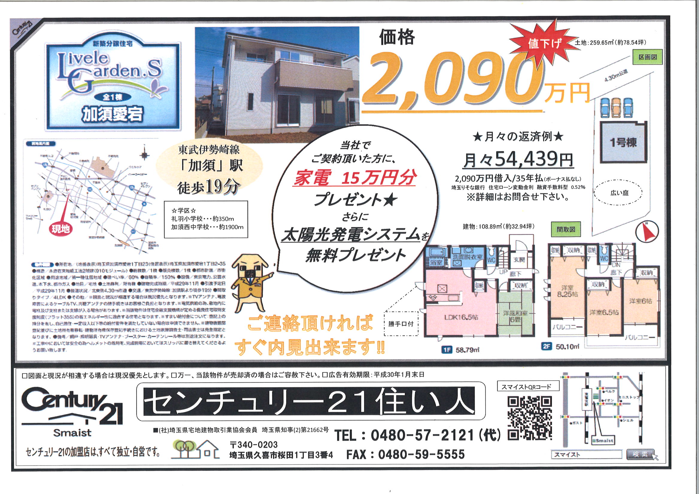 【価格DOWN‼】加須市愛宕 新築戸建て☆【更新】【価格DOWN‼】加須市愛宕 新築戸建て☆ | 東鷲宮・久喜市・加須市・古河市・幸手市の不動産は住い人(スマイスト)